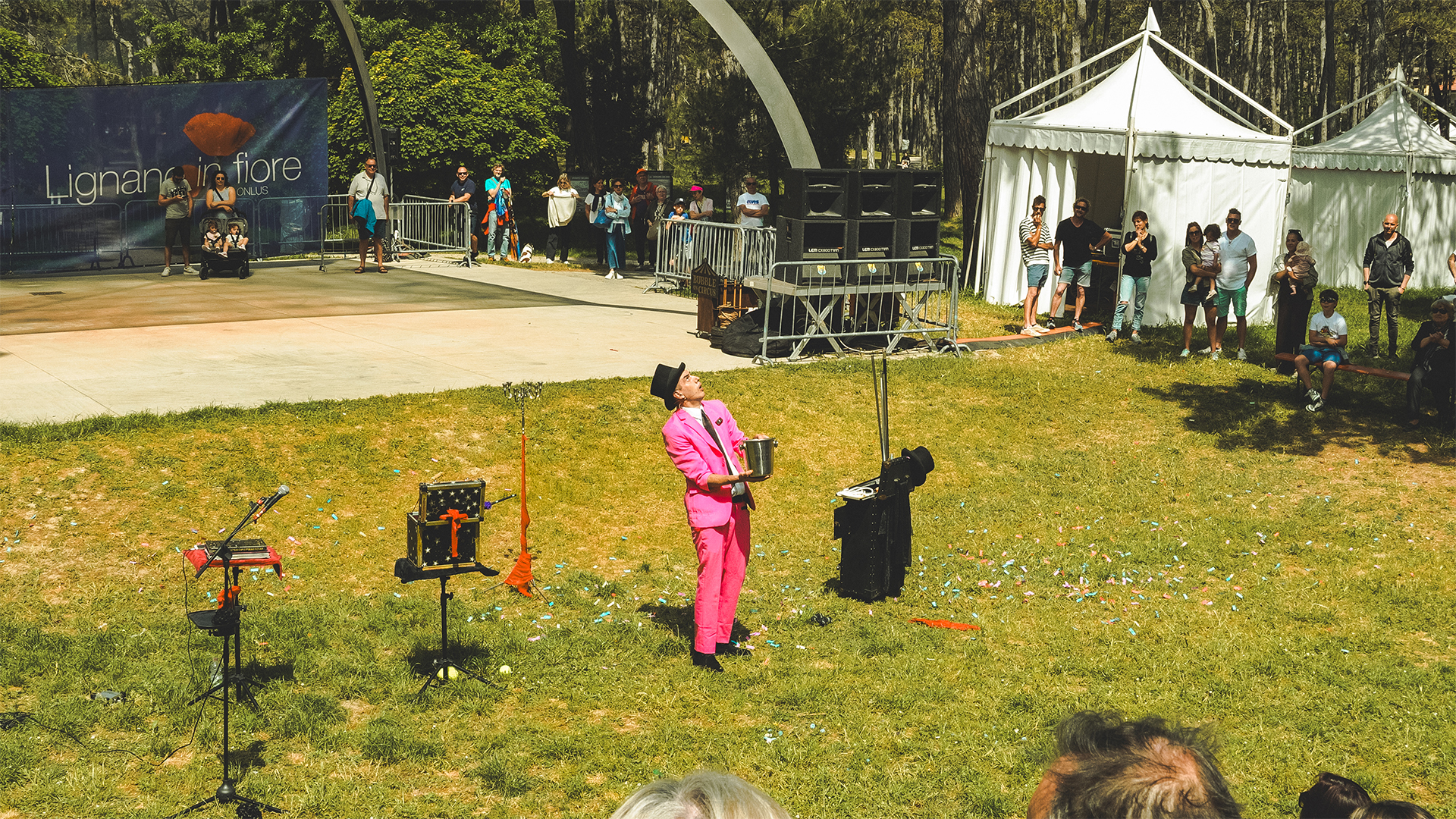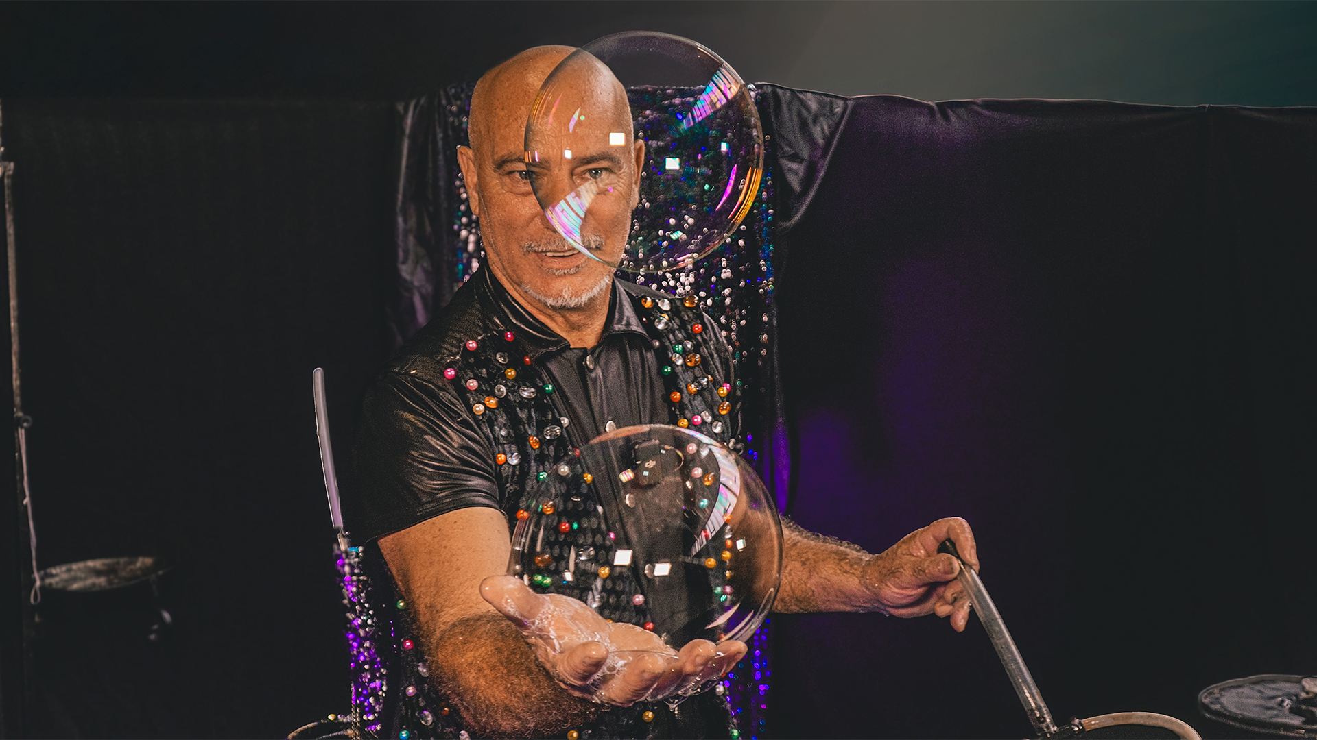I suoi spettacoli hanno incantato teatri, festival e piazze, conquistando il pubblico con la magia effimera e luminosa delle bolle.